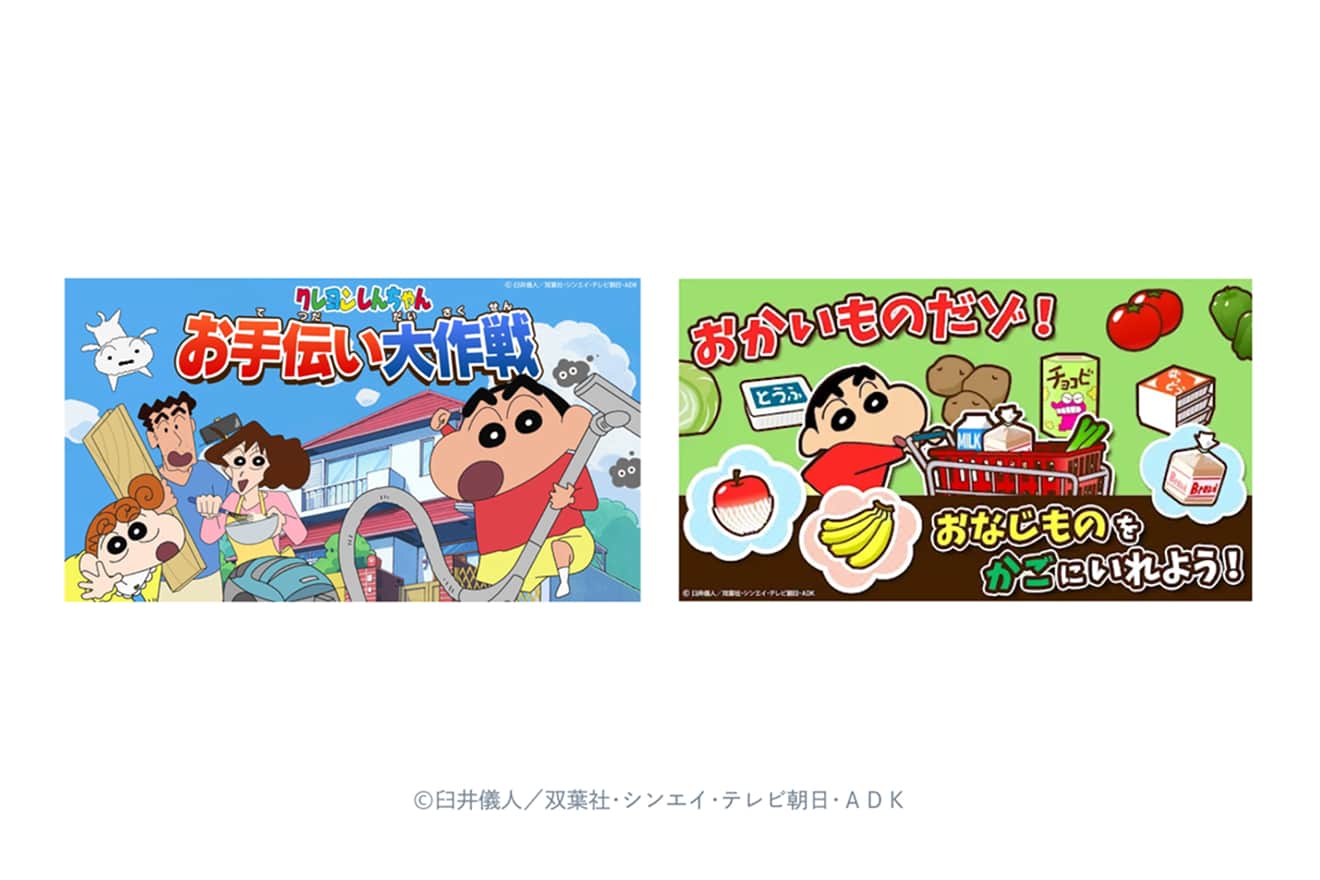 実際、コンペではすぐに採用が決まりましたが、ここであるアイデアが頭をよぎります。「これを“クレヨンしんちゃん”でやれば、もっと大きな反響が得られるのではないか」――その直感を信じ、企画を一旦取り下げ、すぐに版権元の双葉社にプレゼンに伺いました。何度も提案とブラッシュアップを重ね、試行錯誤の末に誕生したのが、2017年にリリースした『クレヨンしんちゃん お手伝い大作戦』です。期待通り、dキッズ内で念願の1位を獲得。キャラクターの持つ力と知育コンテンツとの融合によるシナジーを改めて感じました。